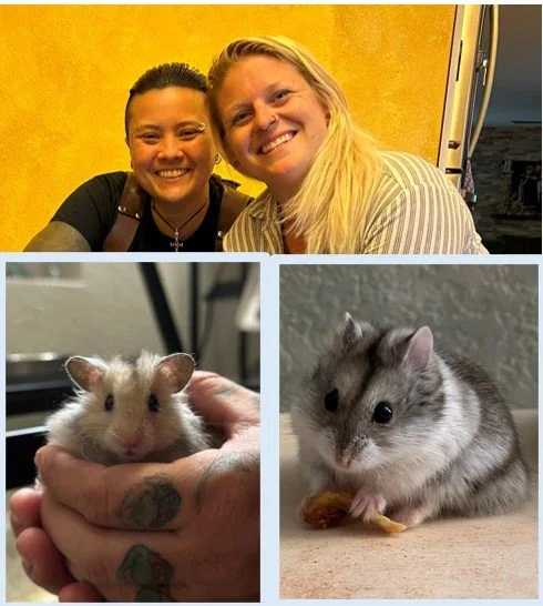 This amazing family came to adopt little Peanut and ended up opening their home to not one, but two hamsters! They are incredible hamster-parents and have so much love to give. Their previous hamster even went to work with them sometimes! We are so grateful and are so happy for Peanut and Truffles – they hit the jackpot!